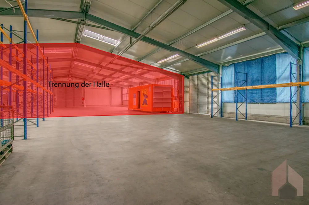 Ein weiterer Pluspunkt: Angeboten wird aktuell eine Teilfläche der Halle, die dank eigenem Rolltor separat und unabhängig genutzt werden kann. Bei Bedarf ist jedoch auch die Anmietung der gesamten Halle möglich – ideal für Unternehmen, die flexibel starten und bei wachsendem Bedarf erweitern möchten.