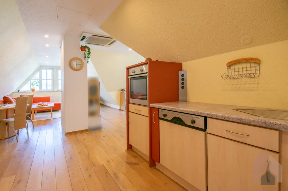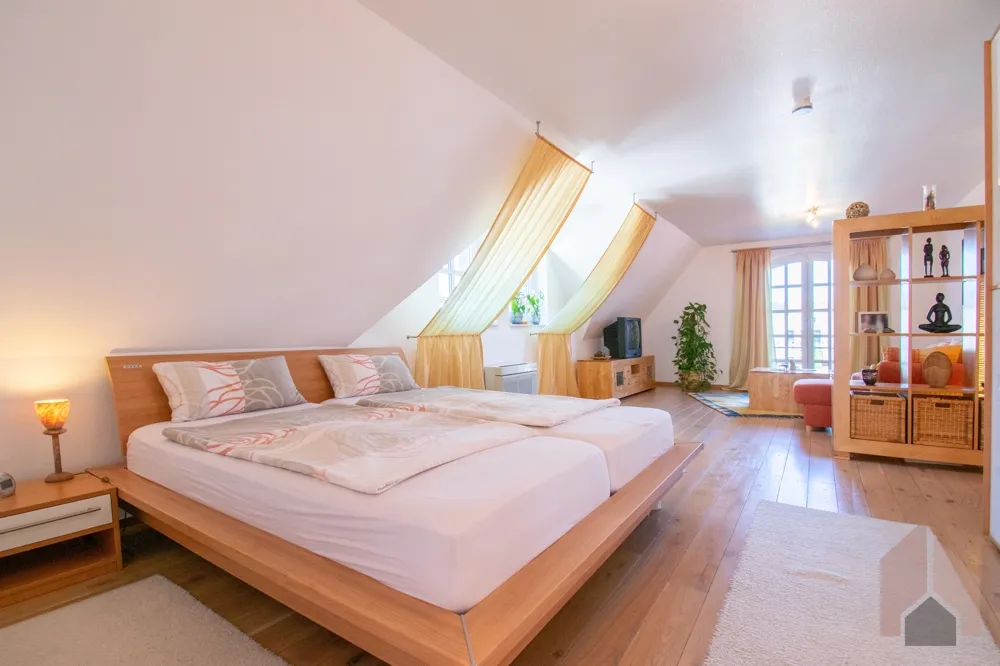 + Ausgebautes Dachstudio mit Einbauküche, eigenem Bad, Schlafzimmer mit Ankleidezimmer und Wohn- / Essbereich mit Einbauschrank