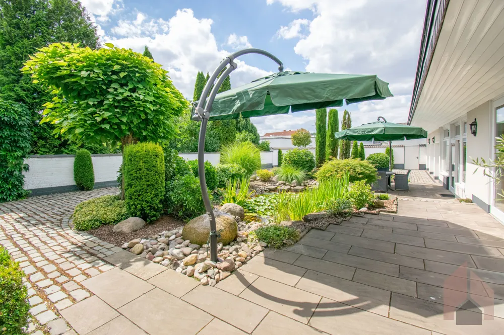 + gepflegter, eingewachsener Außenbereich mit Teich und Natursteinpflaster