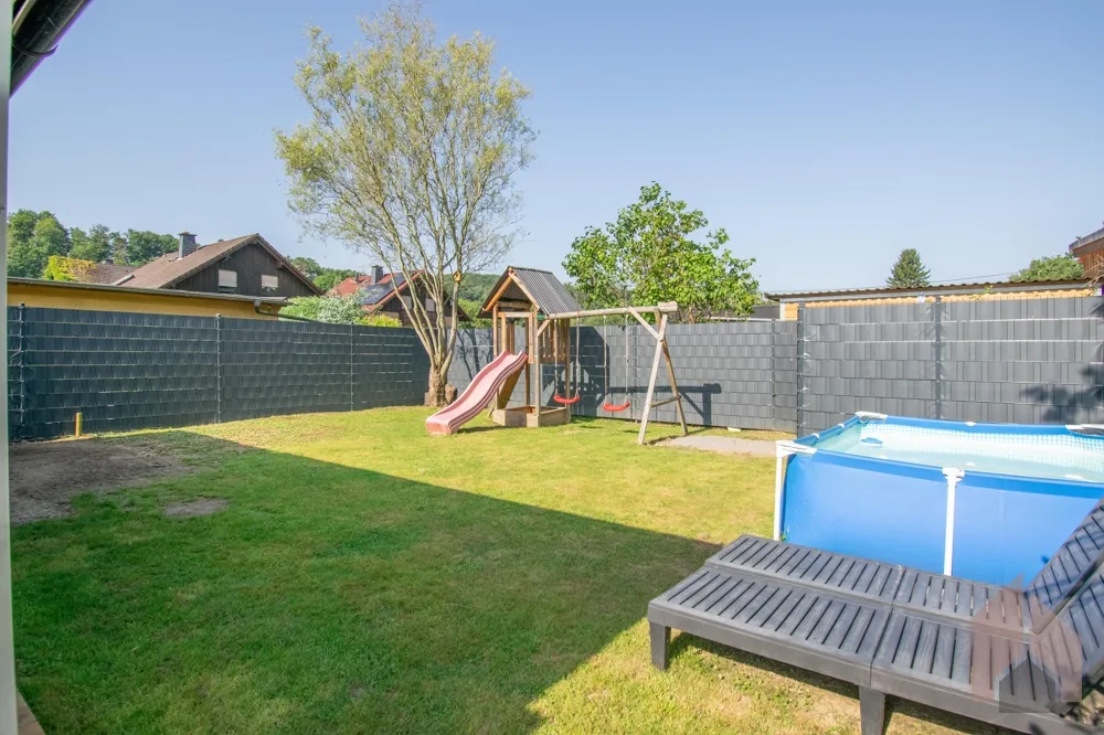 Das gesamte Grundstück wurde 2021 mit einem hochwertigen Doppelstabmattenzaun inklusive Sichtschutz eingezäunt, was für ein hohes Maß an Privatsphäre sorgt. Ein Pool sowie ein Klettergerüst können bei Interesse gerne übernommen werden.