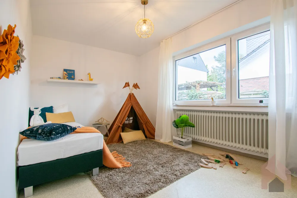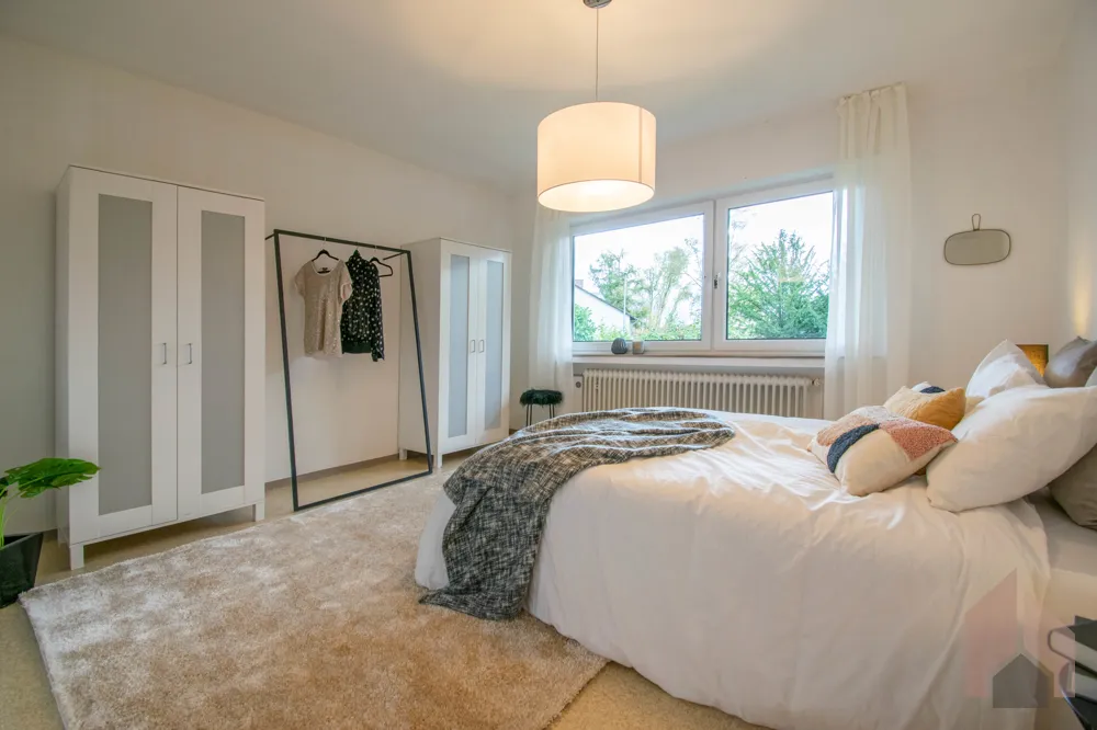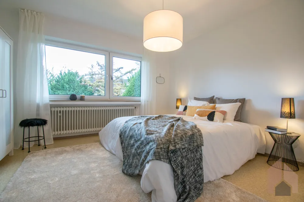 Auf Grund der Nähe zum Flughafen Köln-Bonn wurden in den Schlafräumen im EG und UG nachträglich spezielle Fenster eingebaut. Eine Belüftungsanlage sorgt dafür, dass Sie auch im Sommer bei geschlossenem Fenster frische Luft und trotzdem ausreichend Ruhe haben.