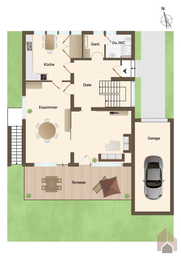 + Terrasse mit großem, gepflegten Garten