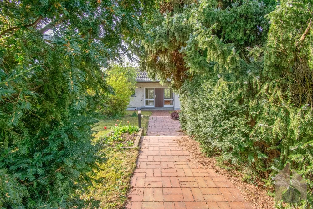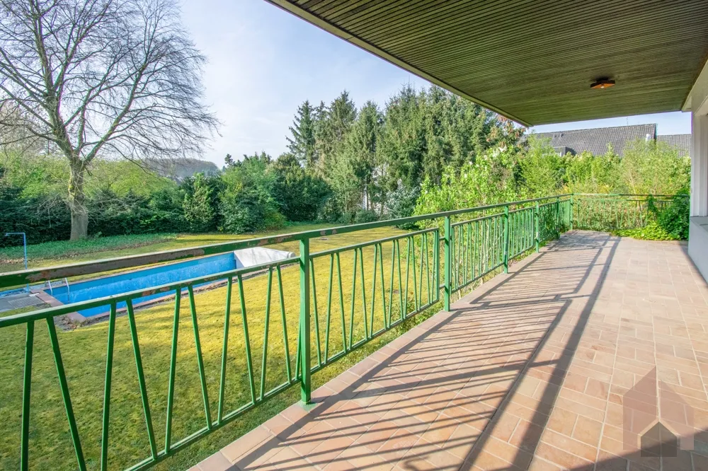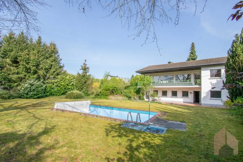 Das Gebäude steht zentral auf dem weitläufigen Grundstück. Ein großzügiger Vorgarten eröffnet Gestaltungsspielraum, während der Garten hinter dem Haus mit Pool überzeugt. Der hintere Grundstücksbereich ist als private Grünfläche ausgewiesen, dicht bewachsen und bietet eine sehr geschützte Lage.