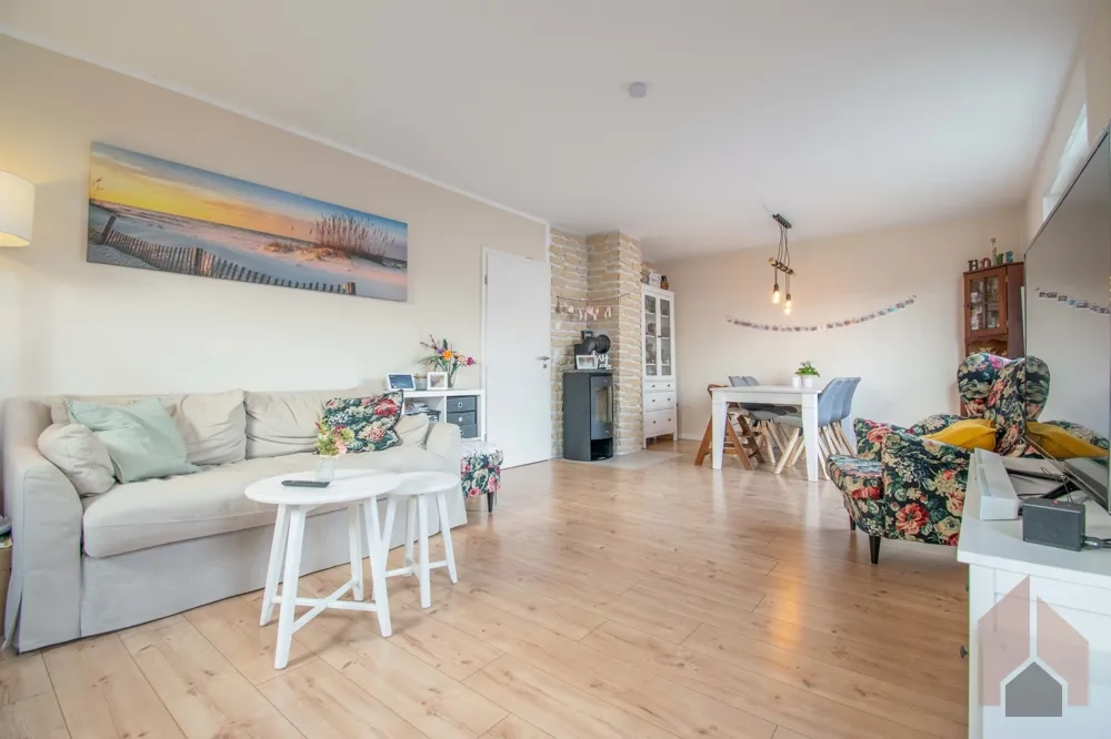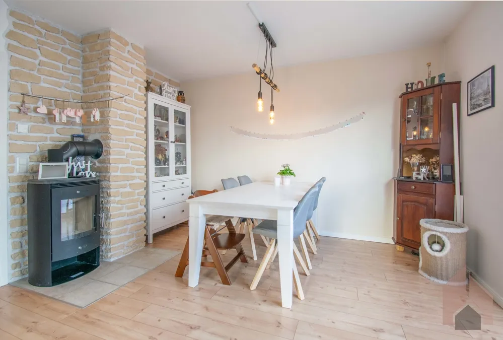 Bereits hier empfinden Sie ein Gefühl von Behaglichkeit, welches sich auf dem weiteren Weg in das offene Wohn-/Esszimmer fortsetzt. Ein Kaminofen schafft die Verbindung der beiden Bereiche. Drei Terrassentüren mit Zugang zum Garten mit samt der großzügigen Terrasse, durchfluten den knapp 29 m² großen Raum mit Licht.