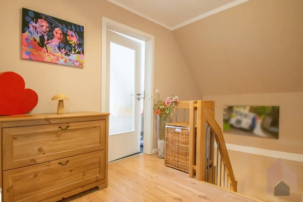 In der oberen Etage finden neben dem Hauptschlafzimmer, sowie dem 2021 modernisierten Badezimmer mit Wanne und Dusche, zwei weitere Zimmer ihren Platz. Mit jeweils ca. 12 m² bieten die Räume eine ideale Größe für Kinder-, Arbeits-, Gästezimmer oder sogar Kombinationen verschiedener Nutzungsmöglichkeiten. Lassen Sie Ihrer Gestaltung freien Lauf.