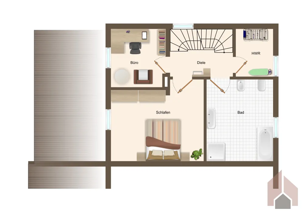 + Hauptbad mit XXL-Dusche und Badewanne