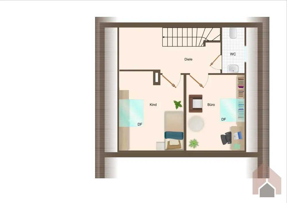Über eine weitere Echtholztreppe gelangen Sie in das 2018 nachträglich ausgebaute Dachstudio. Ca. 23 m² Wohnfläche, aufgeteilt auf zwei Zimmer oder alternativ mit der Möglichkeit zur Öffnung, warten auf Ihre Gestaltung.