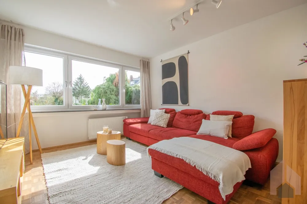 In dem ca. 27 m² großen Wohnbereich finden Sie ausreichend Fläche für eine große Couch, auf der Sie gemütliche Stunden mit Familie und Freunden verbringen.