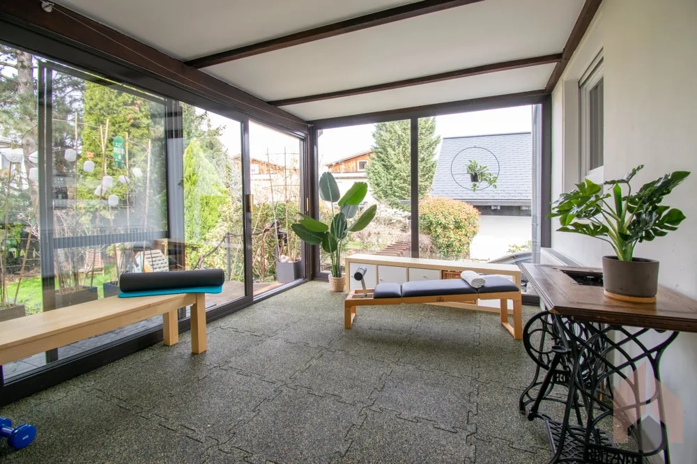 Zusätzliche Wohnfläche bspw. zur Nutzung als Hobbyraum oder aber auch als erweiterten Essbereich, schafft der an den Wohnbereich angeschlossene Wintergarten mit seinen ca. 16 m².