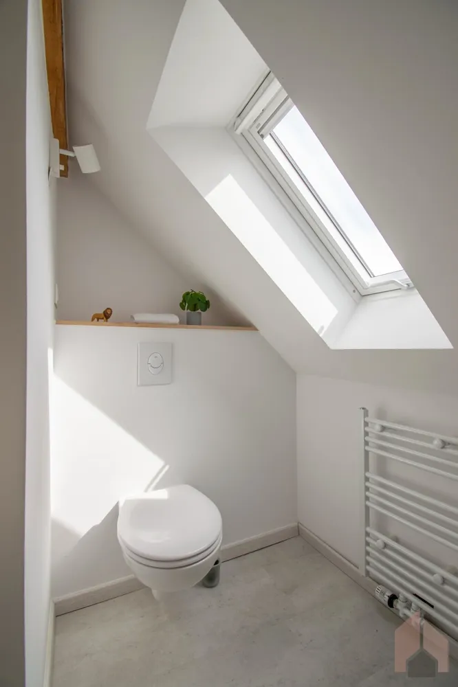 Als weiteres „i-Tüpfelchen“ finden wir hier im Dachgeschoss noch ein zusätzliches Tageslicht- WC mit Toilette und Waschbecken.