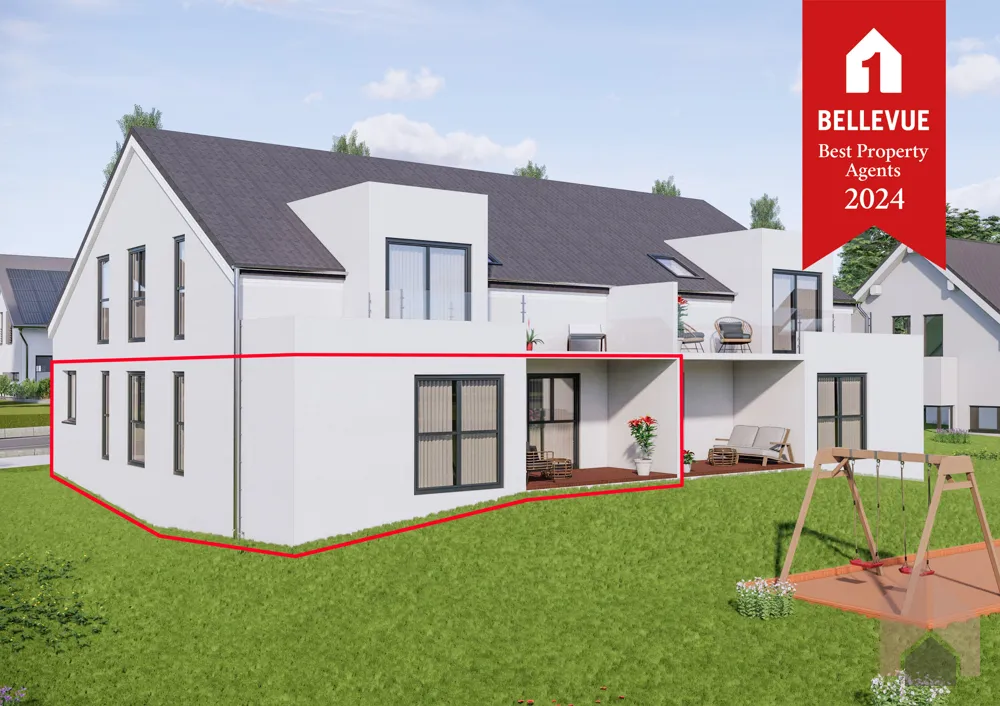 Das Herzstück der Wohnung ist der offen gestaltete Wohn-, Ess- und Küchenbereich. Hier lässt es sich hervorragend entspannen und kochen. Während den Vorbereitungen für das Essen kommunizieren Sie weiterhin, durch den offenen Grundriss, mit der Familie und/oder Ihren Gästen. Die angrenzende Terrasse mit Garten und Spielfläche für die Kinder lädt zu langen Sommertagen mit Freunden ein.