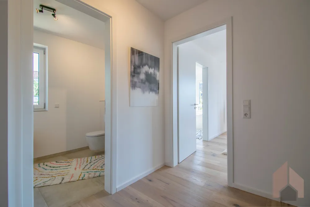 Die Etage wird mit einem Tageslichtbadezimmer inkl. Dusche und einem weiteren Raum, z.B. nutzbar als Büro, ergänzt.