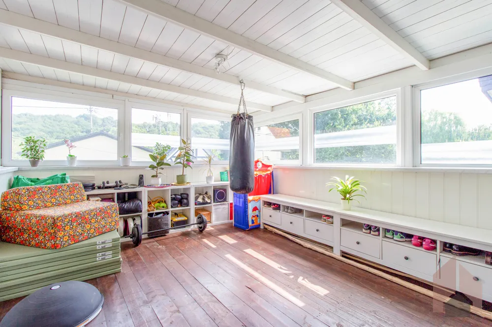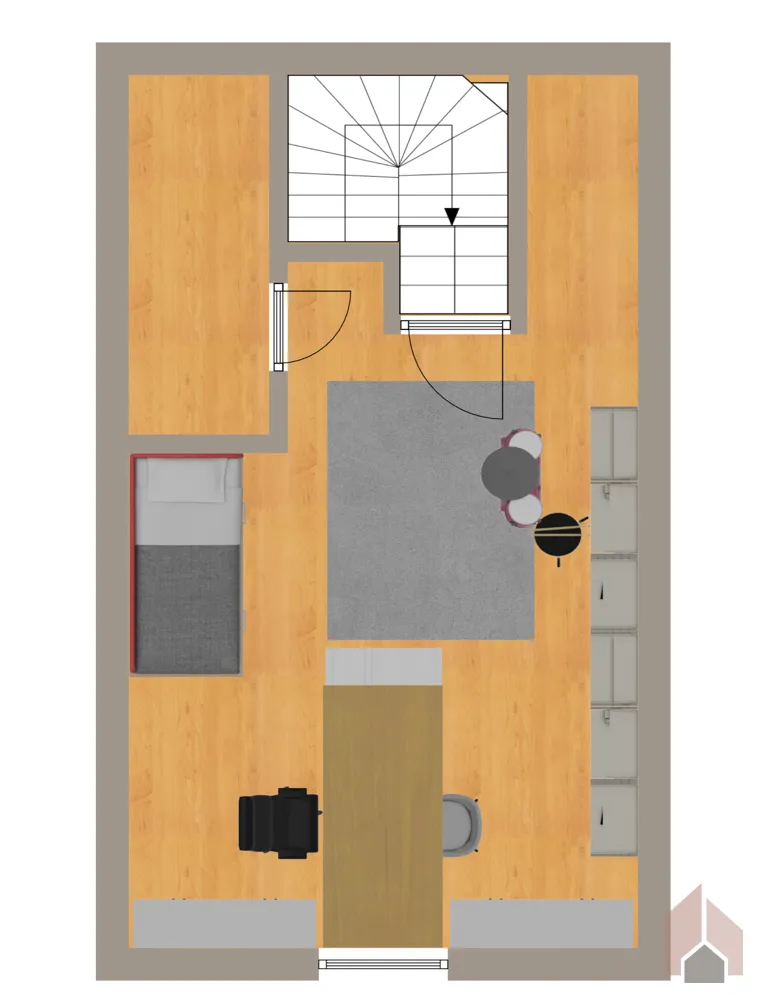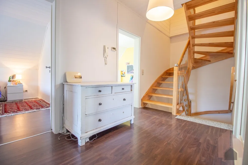 Weiter geht es über eine hochwertige Treppenkonstruktion aus Holz auf den voll ausgebauten, attraktiven Spitzboden des Hauses. Derzeit wird die Fläche als Homeoffice und Musikzimmer genutzt. Zusätzlicher Stauraum für Koffer, saisonale Deko, etc., ist ebenfalls gegeben.