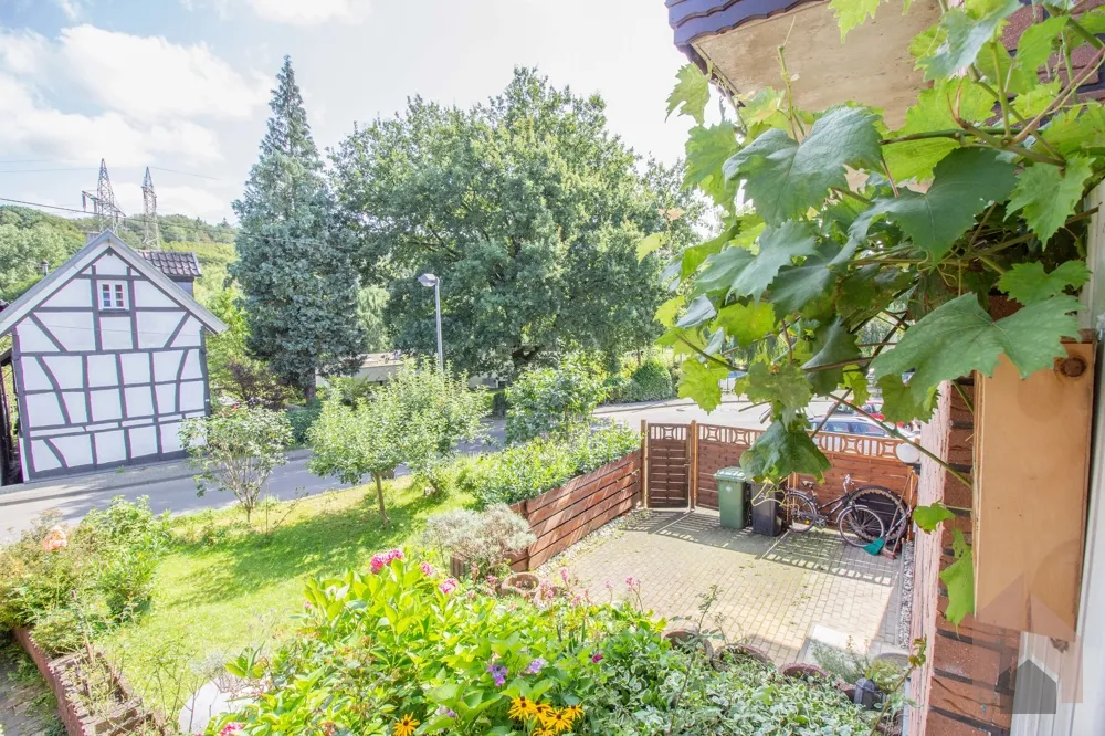 Das ca. 358 qm große Grundstück ist durch seine Hanglage vielfältig unterteilt und nutzbar. Momentan bietet es neben Pflanzsteinen und dem Treppenaufgang zum Haupteingang zwei kleinere Rasenflächen, die beispielsweise zum Aufstellen von Spielgeräten oder zum Anlegen eines Zier- oder Gemüsegartens einladen.