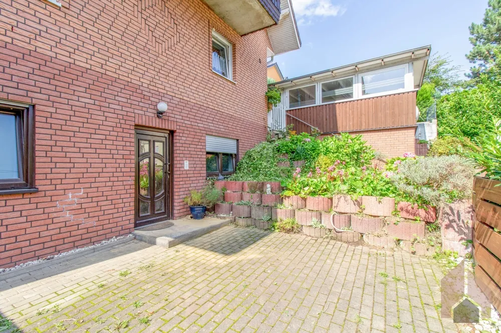 Parallel zum Haupteingang des Hauses ist ein kleiner, gepflasterter Terrassenbereich angelegt, der im Sommer Entspannung und gemütliches Beisammensein garantiert. Hier befindet sich ebenfalls der separate, geräumige Wintergarten, der eine Vielzahl an Nutzungsmöglichkeiten bereithält.