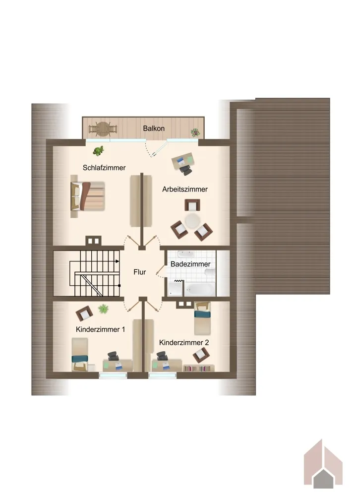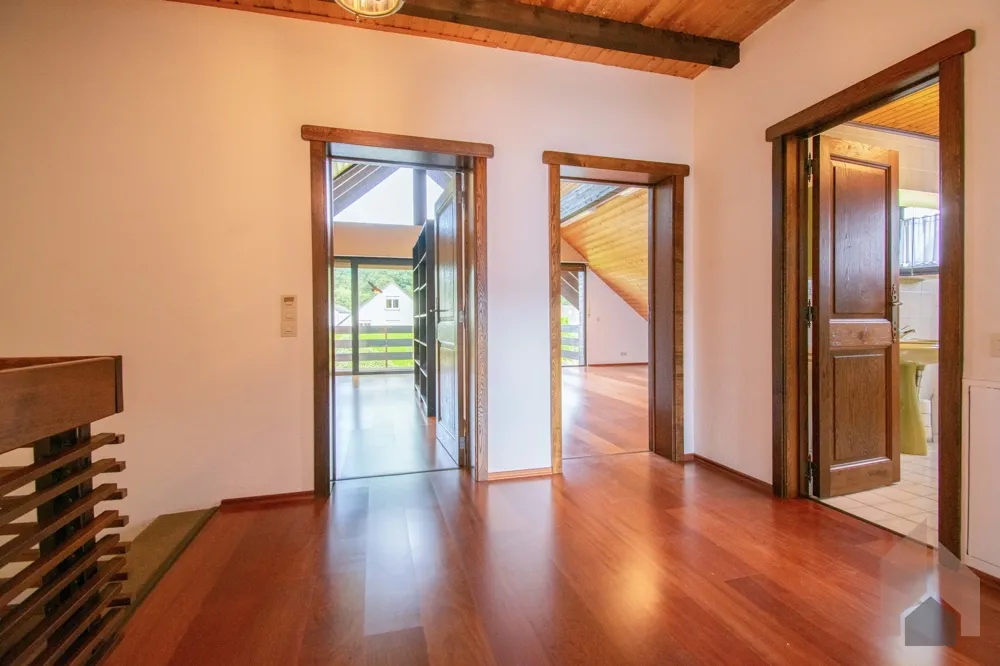 Über das offen gestaltete Treppenhaus erreichen Sie das Obergeschoss, welches ebenfalls mit Großzügigkeit punktet.