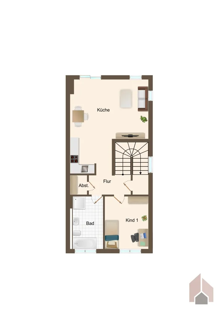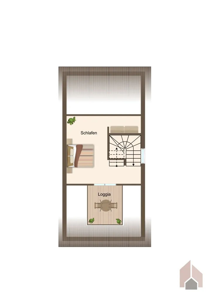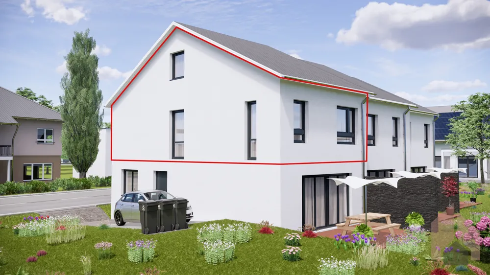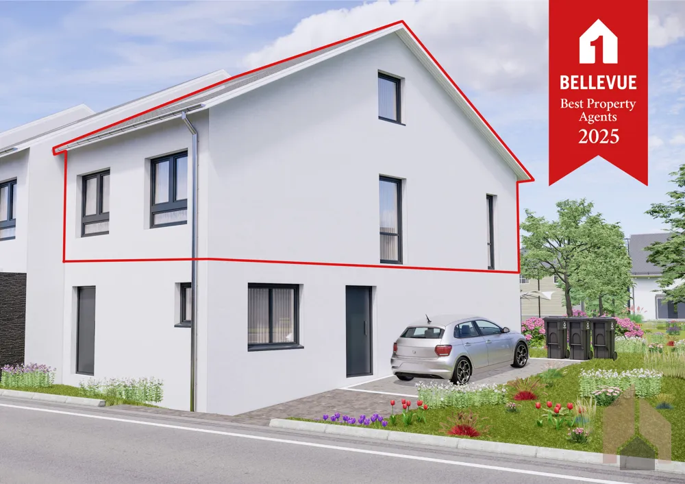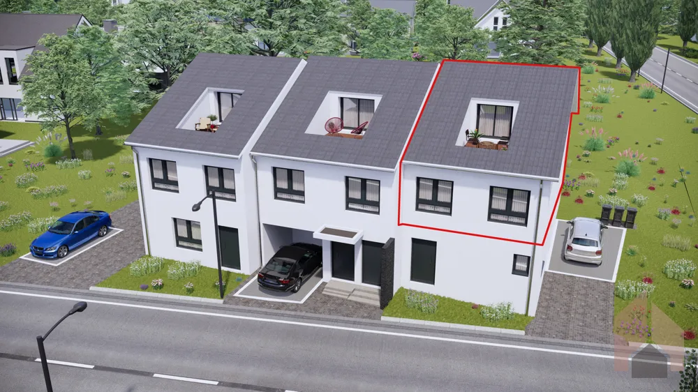 Ihre zukünftige Wohnung wird sich im Obergeschoss eines Zwei-Parteienhauses befinden und über zwei Etagen erstrecken.
